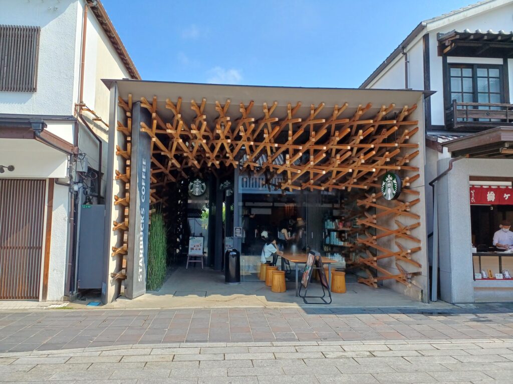 隈研吾の設計によるスタバ。このようなスタイルのスタバはここだけです(^_^;)