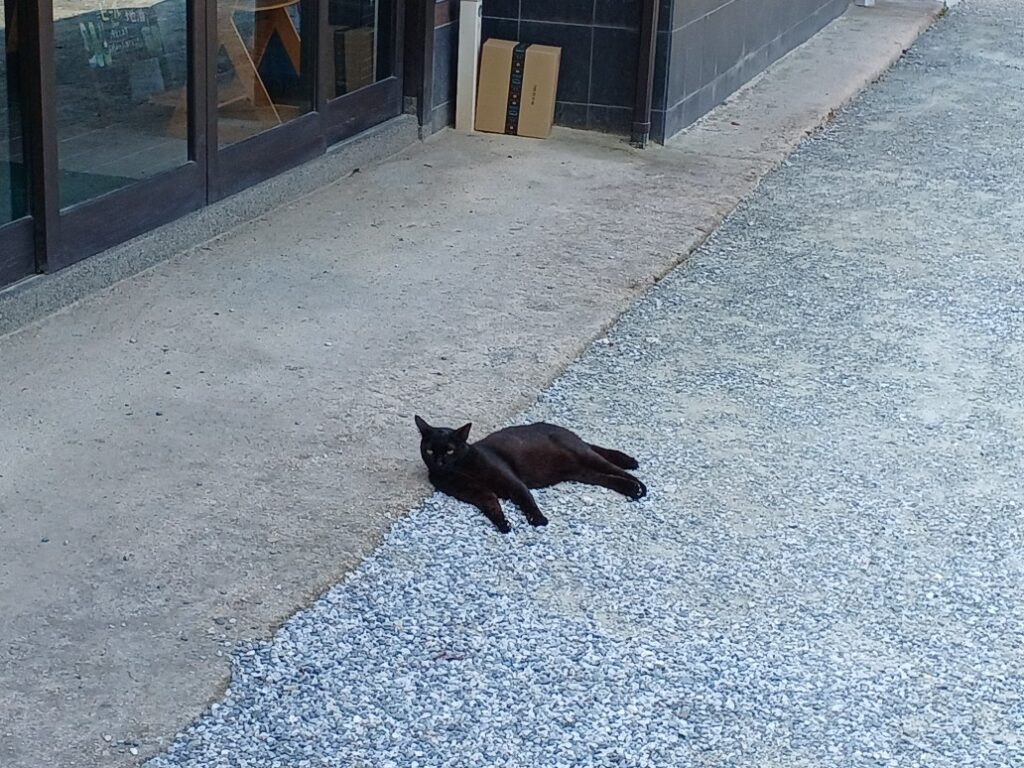 途中の茶屋で黒猫が休んでました(=^・^=)