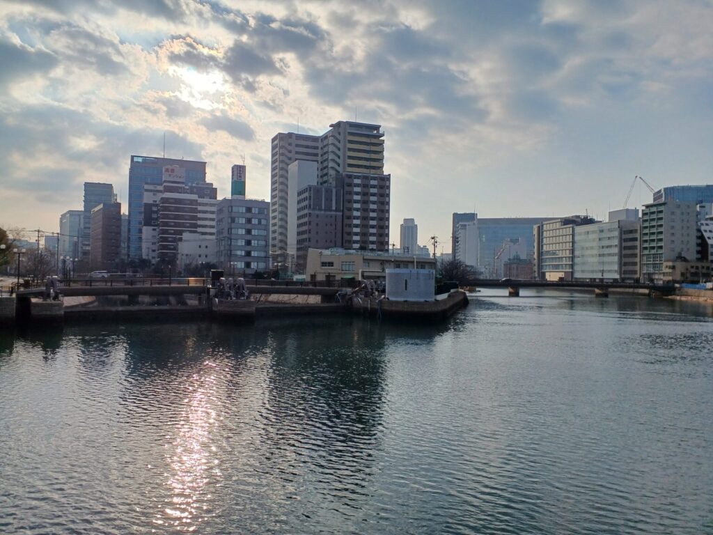 お次は福岡市博多区須崎町にある「須崎橋」です。三連水車と同じ「水のため息」篇にて放送されました。この須崎橋はCMの最後に出てきて旅人が欄干に寄りかかって川の流れを眺めるのが印象的です。私も旅人と同じように川の流れを見ながら黄昏てしまいました。心なしかCMとアングルが違ってますが(;^ω^)