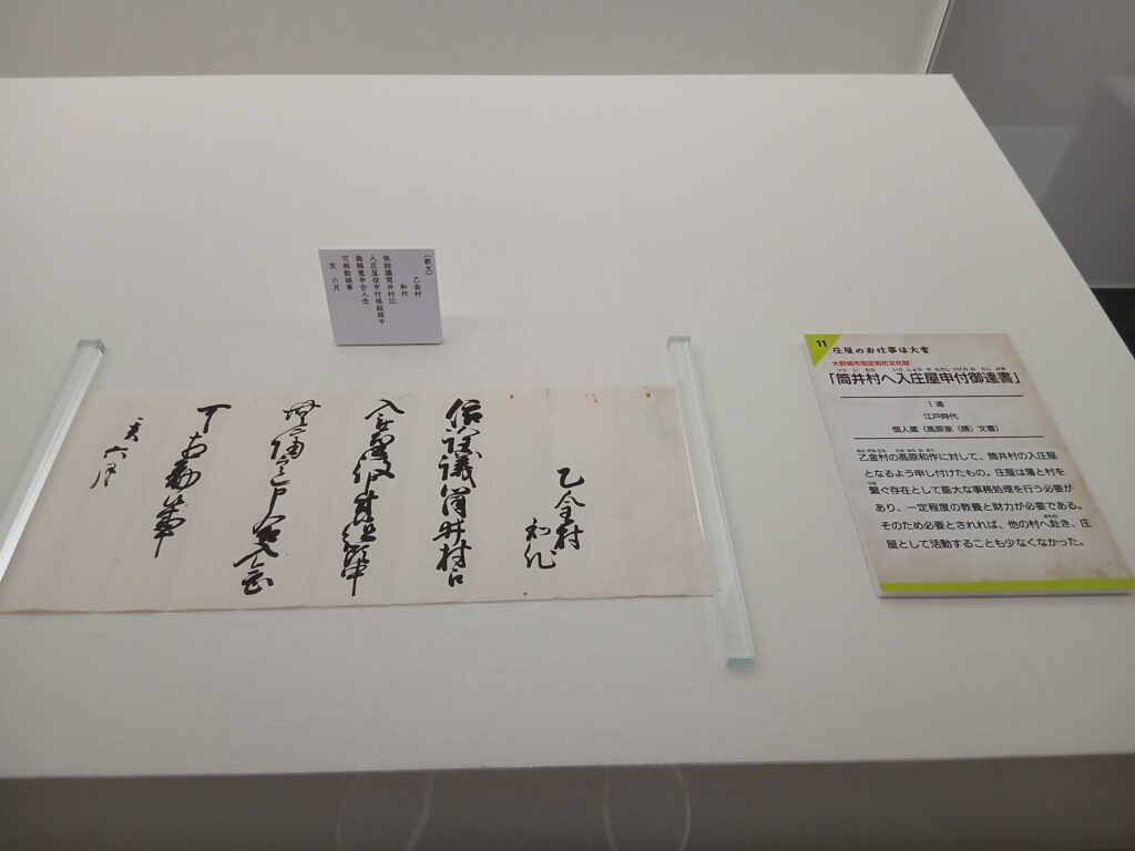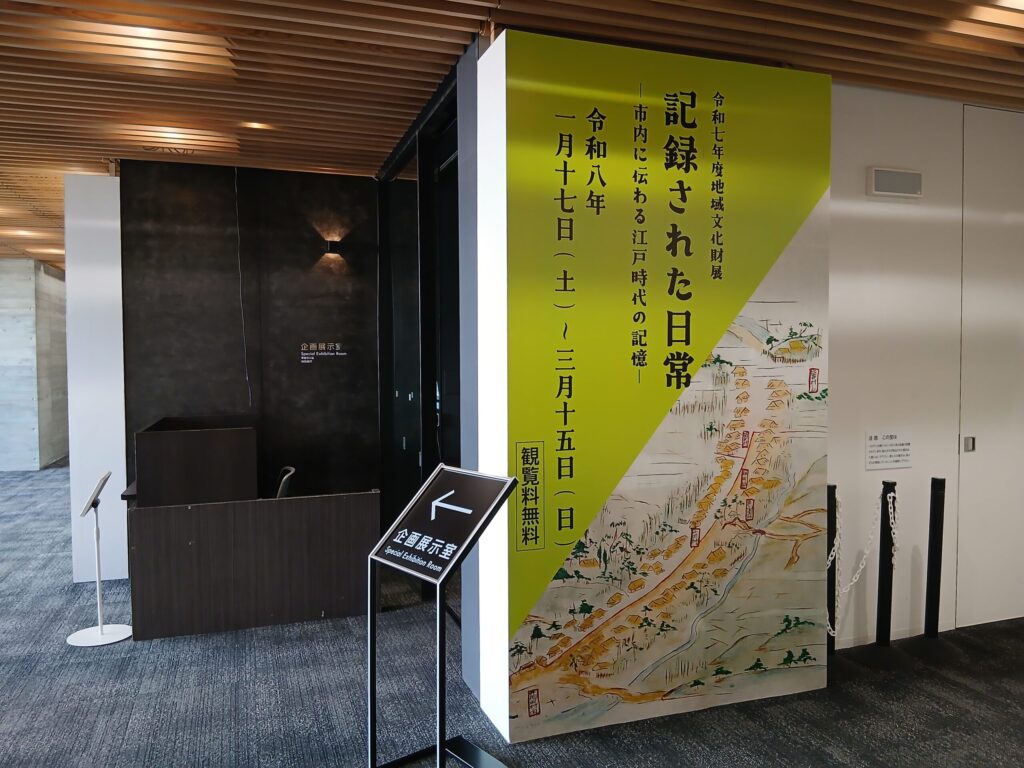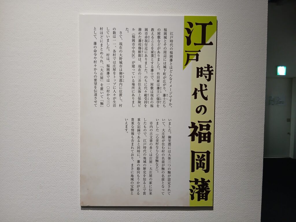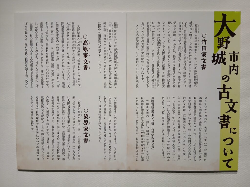 もうひとつの企画展の、記録された日常です。江戸時代の大野城市についての古文書が展示されています。
