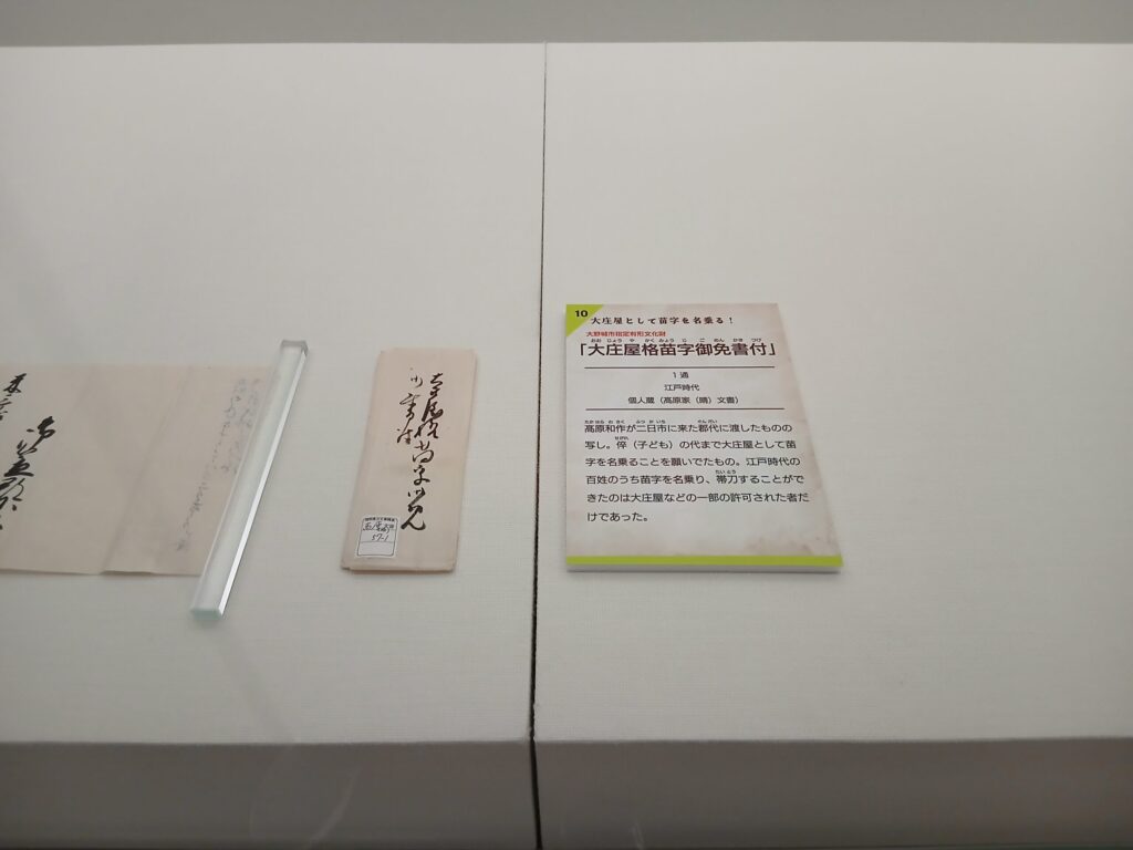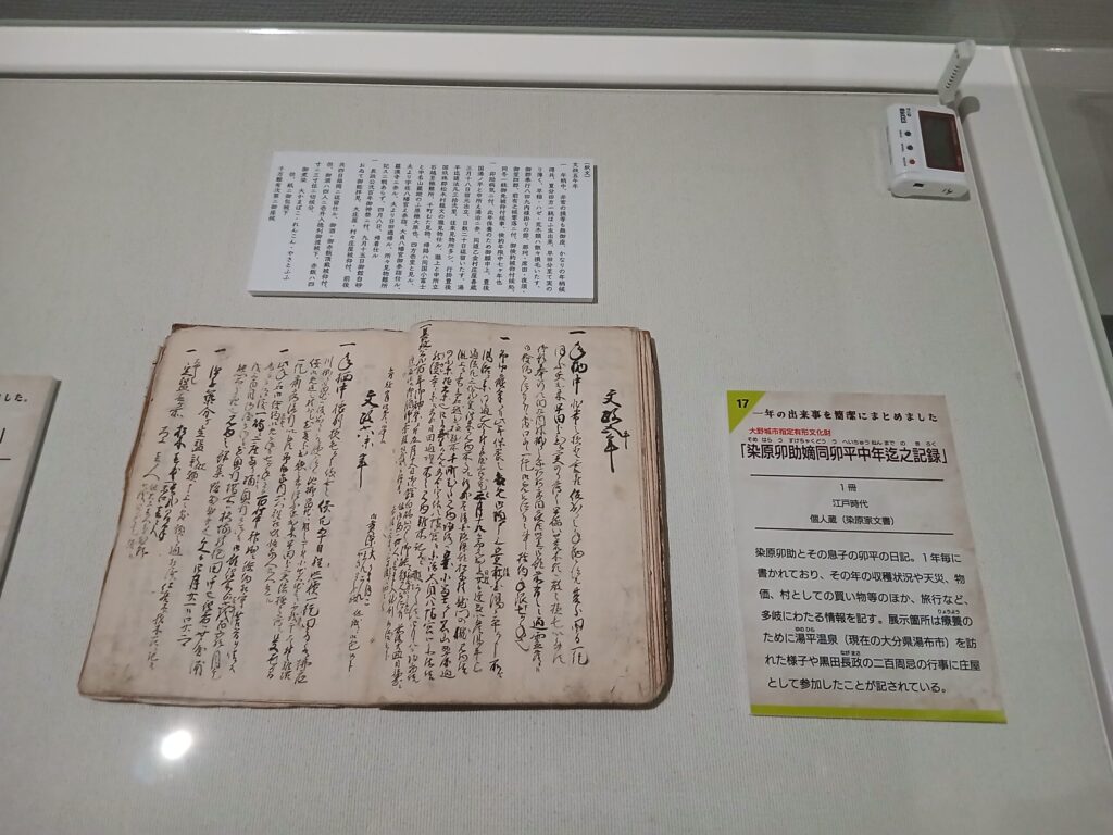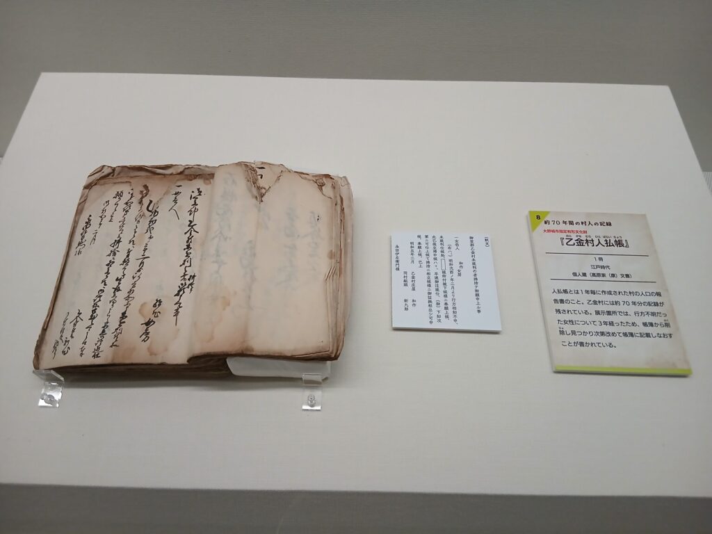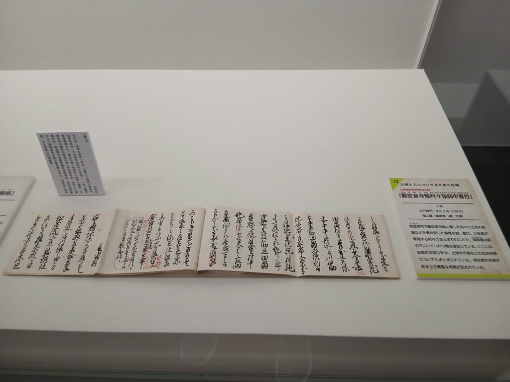 もうひとつの企画展の、記録された日常です。江戸時代の大野城市についての古文書が展示されています。