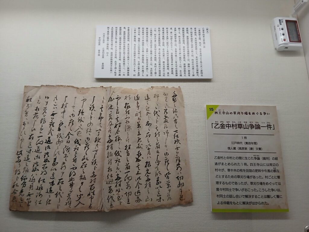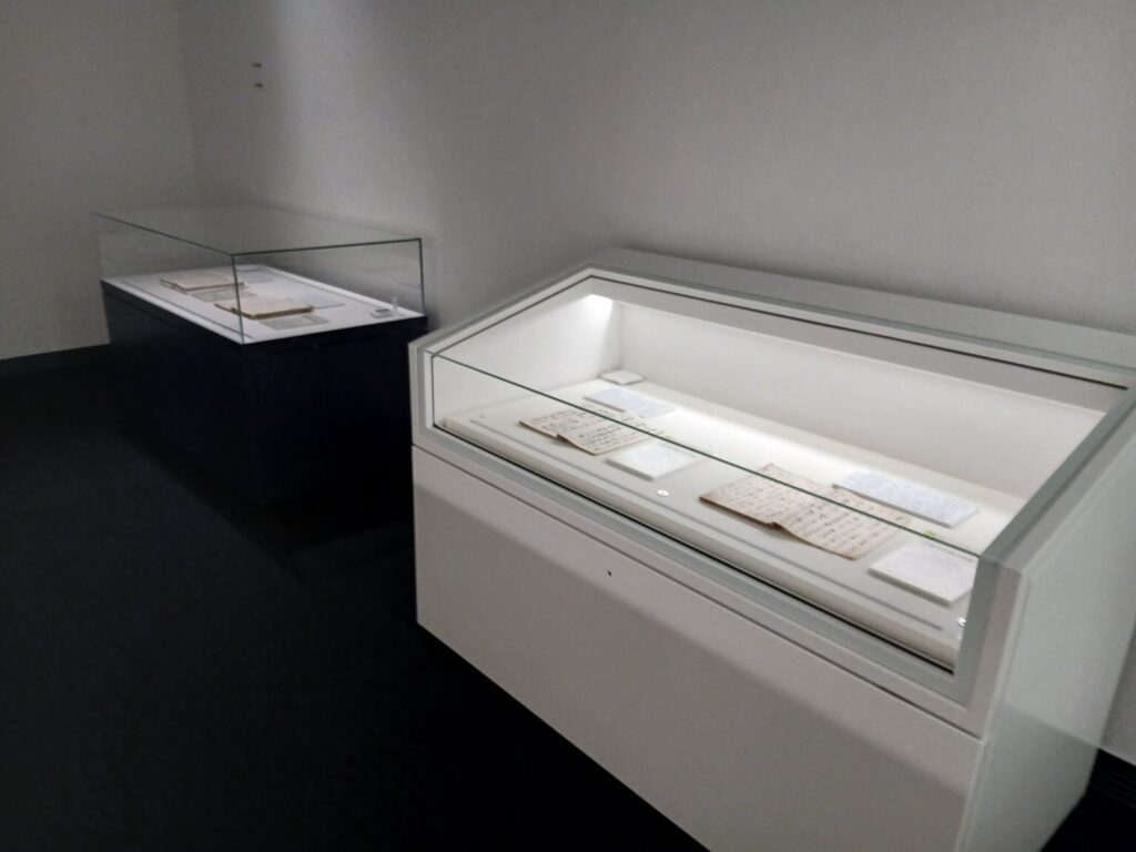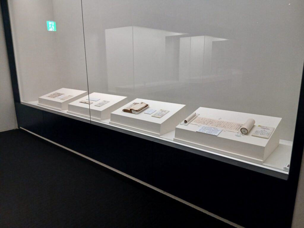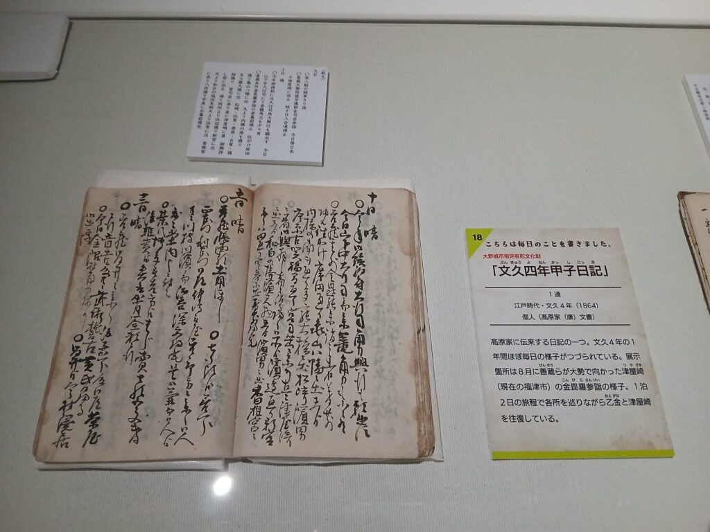 これらには釈文も展示されてます。それを見てもすぐには文章を理解することは難しいですが、例えば四王寺山でまさかのトラブルになったとか、一泊二日で宮地岳に出かけて全部徒歩で疲れたとか、商売の取引の内容についてだとか本当に日記のように当時の日常や出来事などが書かれているようです。
