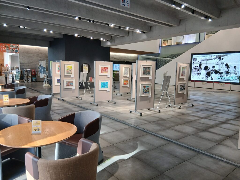 1階の様子です。イベントで描いた子供達の絵が展示されています。