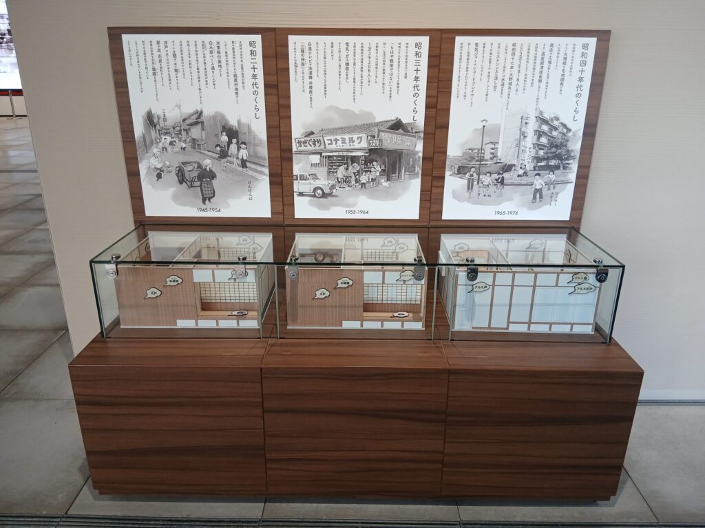 昭和のそれぞれの年代の家屋の模型です。個人的にこういうものにそそられます。
