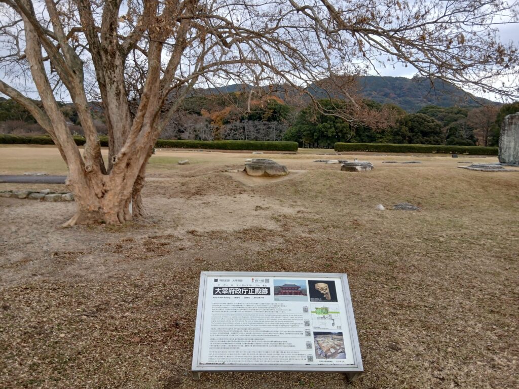 ちなみに大宰府政庁跡とは、7世紀後半から12世紀後半、大宰府は行政機関として九州を統括して西の都としての役割を果たし、地理的に日本の外交と防衛の最前線、アジア大陸の窓口としても機能したことから、重要な政治の中核として大宰府の中心地に政庁が建設されたものです。