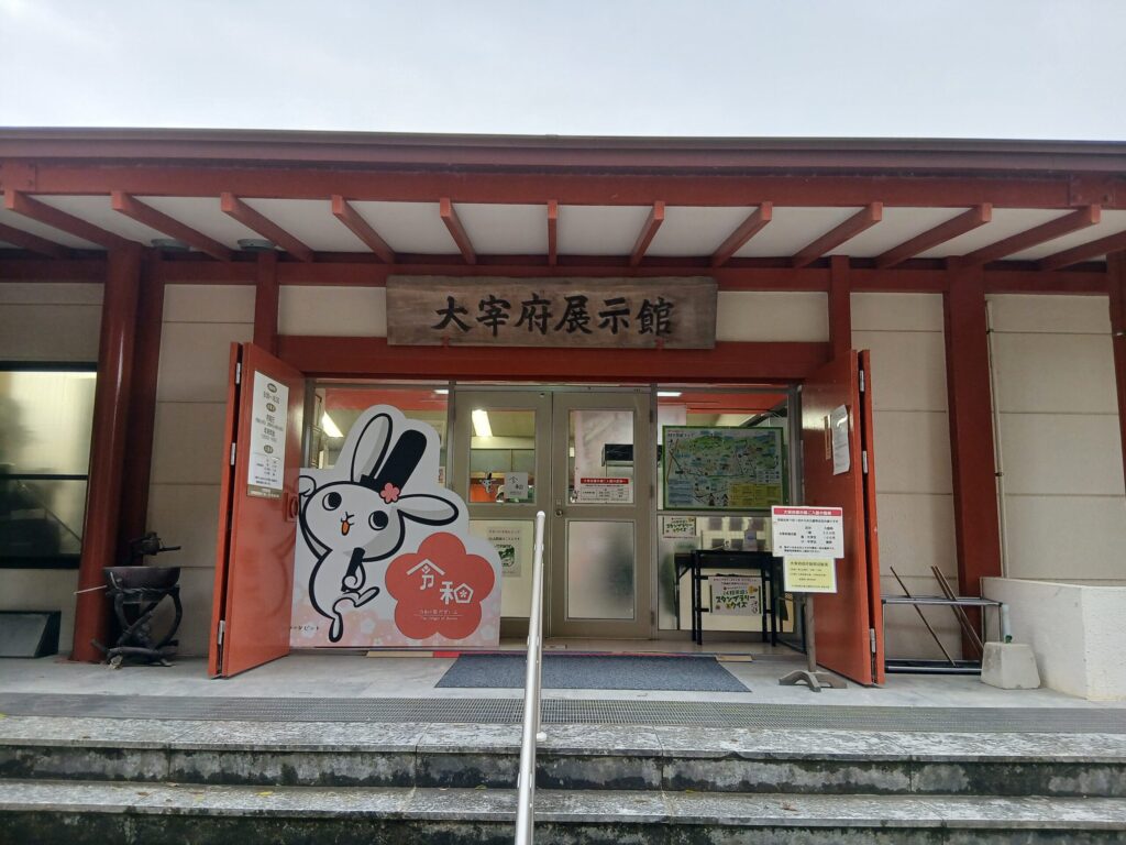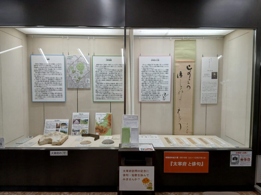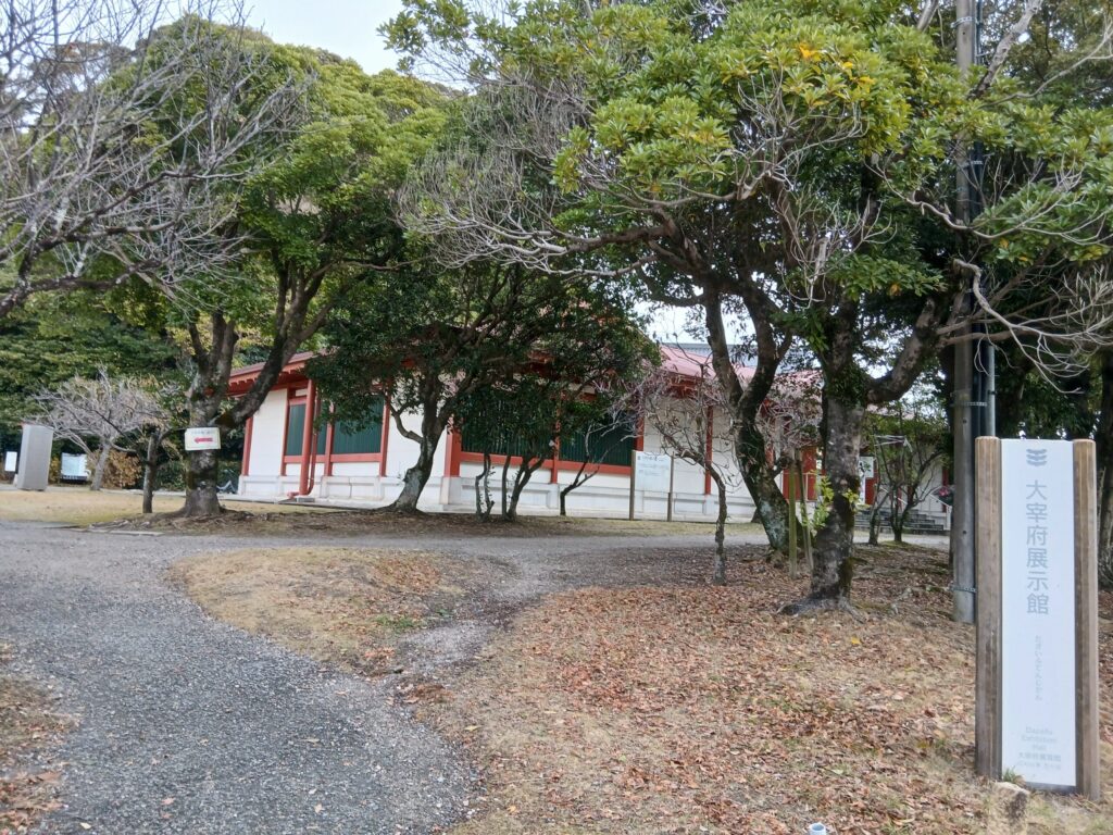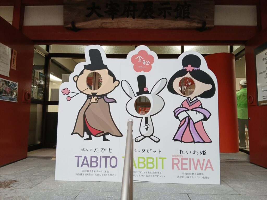 太宰府展示館の出入口です。通りからは反対側にあります。上記の歌碑を通り過ぎて裏側に回るとあります。先ほどの顔はめパネルがここではなく出入口からは反対側にあるのは、この場所が置き辛いからではないかと思います(;^ω^)