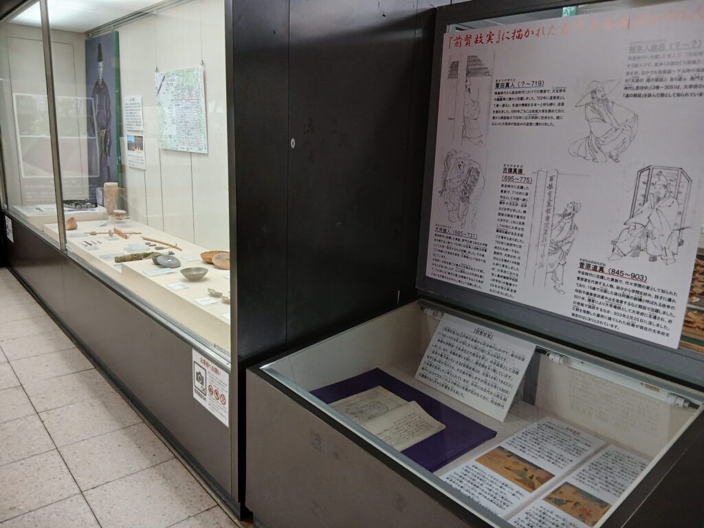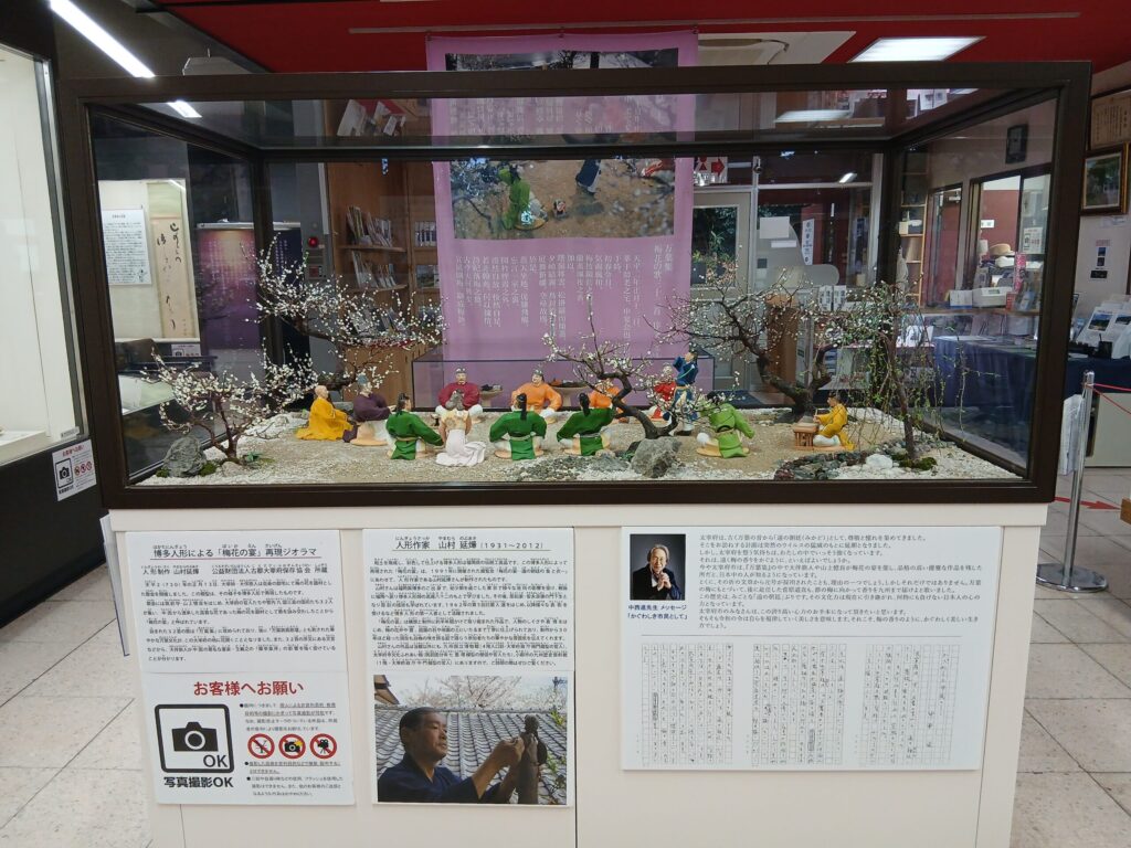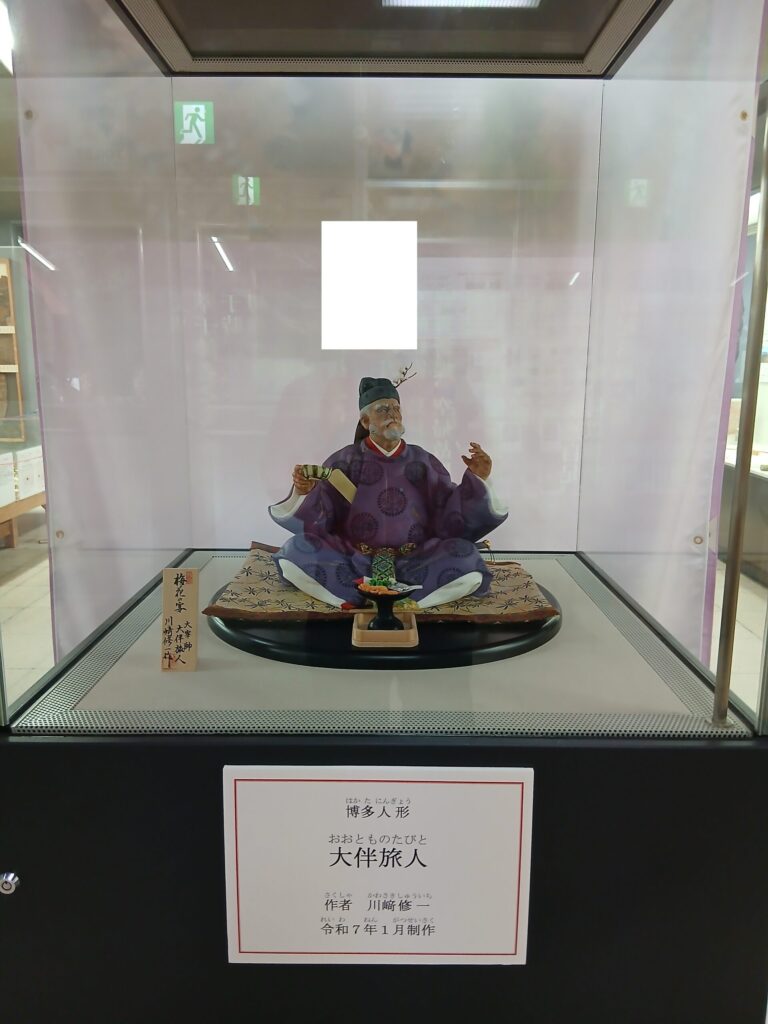 ここからは、館内の展示です。博多人形の大伴旅人です。博多人形とは、一言で言うのは難しいですが、の博多で作られる素焼きの土人形に彩色を施したもので、伝統工芸品に指定されています。