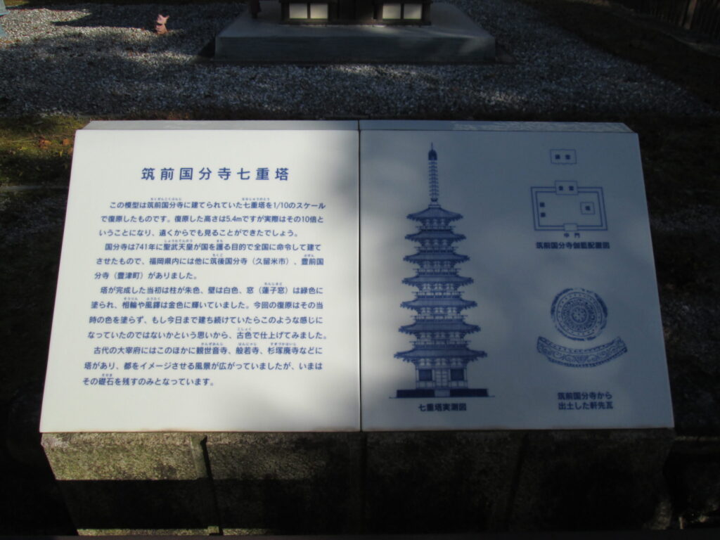 奈良時代に建てられた筑前国分寺にあったと考えられている七十塔を10分の1の大きさで復元した模型です。