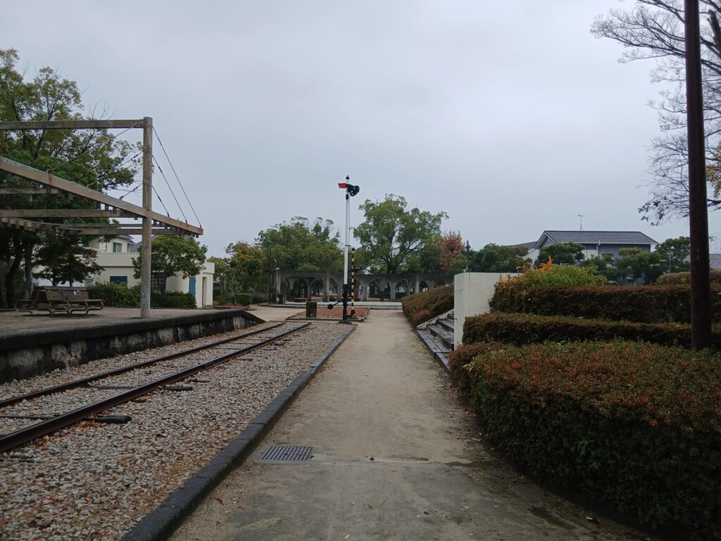 また、竪坑櫓の近くにある「志免鉄道記念公園」にも行ってきました。志免町には、1985年まで石炭輸送のために作られた「香椎線引き込み線」と「勝田線」という鉄道がありました。石炭景気の需要による開通で、当時の一日乗客数は300名、石炭は750トンと、石炭輸送が主でしたが、現在は廃線となっていて、勝田線は緑道として公園整備され、志免駅は志免鉄道記念公園となっています。このような街角の公園が歴史的な遺産のひとつだということにロマンを感じます(* ̄- ̄)フ~ン?